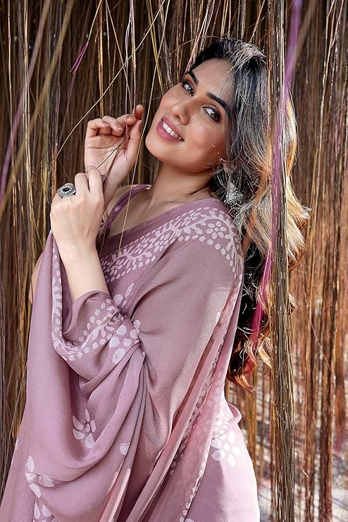 MIRCHI FASHION Women's Latest Chiffon Batik Printed Saree with Blouse Piece