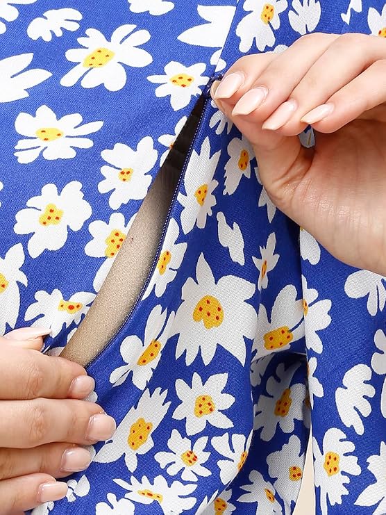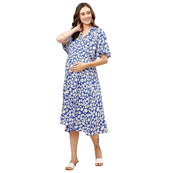 • This Fit & Flare feeding dress is made from soft and pregnancy friendly comfortable rayon fabric for all pregnant mothers. This midi length maternity western wear with side pocket is both convenient and functional for carrying small items.