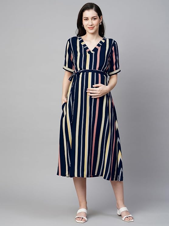 This striped printed pregnancy dress is perfect for any occasion, including casual wear, office wear, baby showers, vacations, parties with friends, family gatherings, and more.