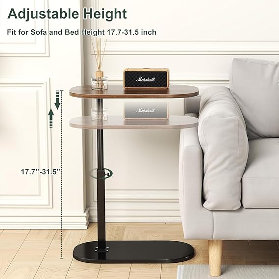 • ✔️Space-Saving Side Table For Couch: If you're looking for space-saving furniture for a small room, this compact sofa table is perfect for you. It doesn't require much space but is incredibly useful as a versatile side table, coffee table, or snack holder. Its Space-saving and C shape design easily slides under sofas or beds. Perfect for small apartments, dorms, and compact rooms.