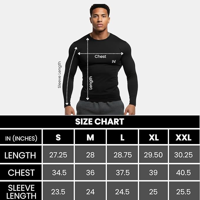 • Compression Body Fit: Experience the difference of a perfect fit with NINQ Compression Full Sleeves T-Shirt. Designed to contour your body, it offers superior compression that supports your muscles during workouts and various sports activities. The compression fit enhances performance and provides excellent recovery support after intense sessions.