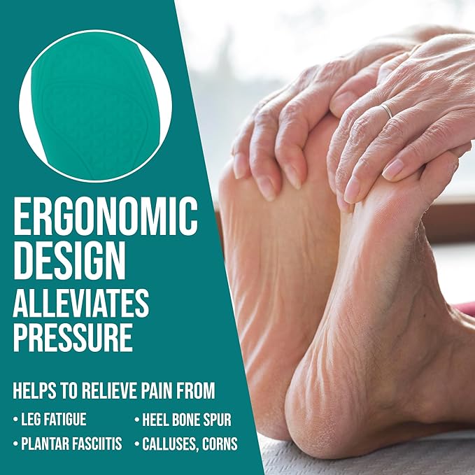 • PAIN RELIEF: Ergonomic and slim design provide relief from pressure and feet pain, plantar fasciitis, heel bone spur, calluses, corns and knee, ankle, heel, metatarsal pain.