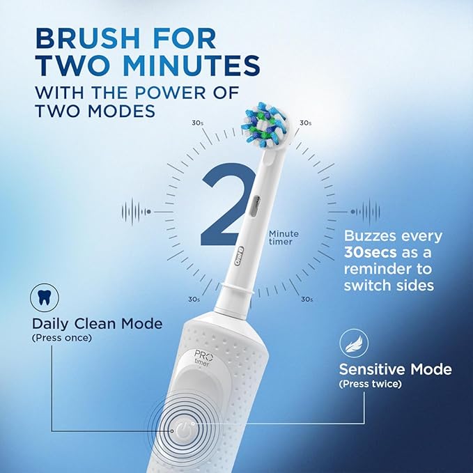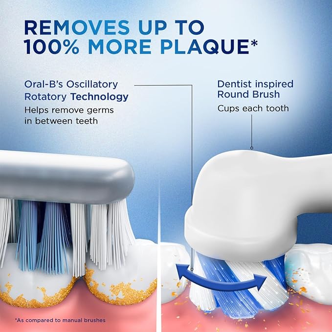 • REMOVE 100% MORE PLAQUE - The Oral B Electric Toothbrush features soft crisscross bristles that are gentle on your gums while effectively removing up to 100% more plaque compared to a regular manual toothbrush. Enjoy a thorough and gentle clean every time.
