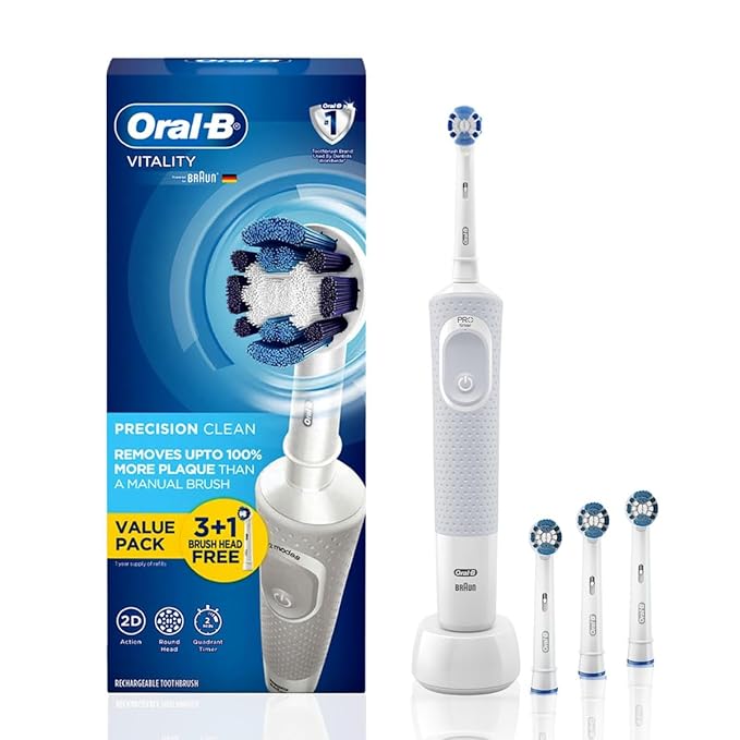 Oral-B Vitality Rechargeable Rotating Electric Toothbrush For Adults With 4 Brush Heads & 2 Modes