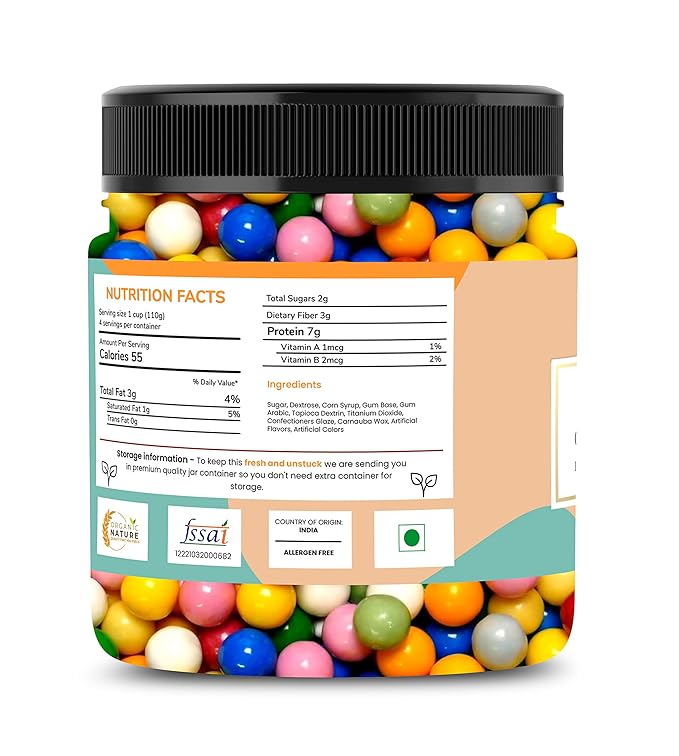 Organic Nature Chewing Gum Balls (Sugar Coated) Bubble Gums Candy [Jar Pack] (300 Grams (Pack of 1 of 300 Grams))