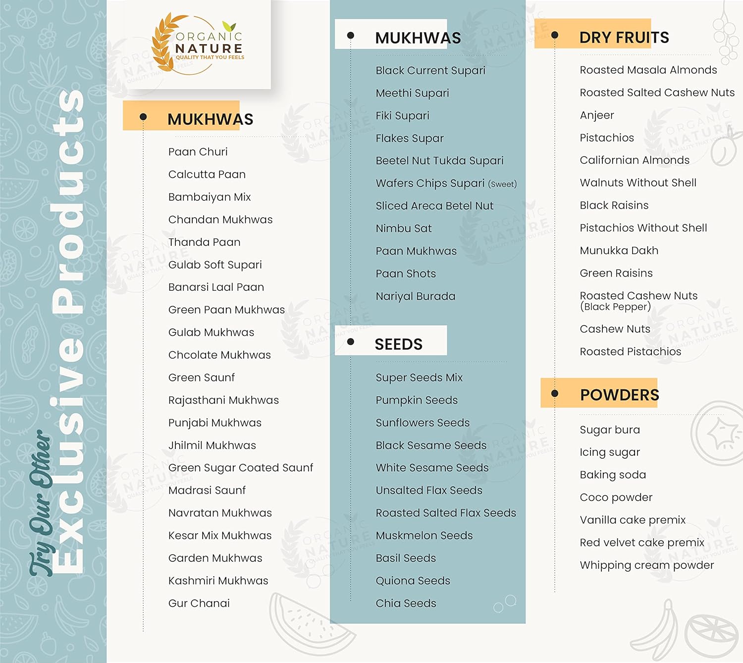 • Organic Nature: Quality that you feel.