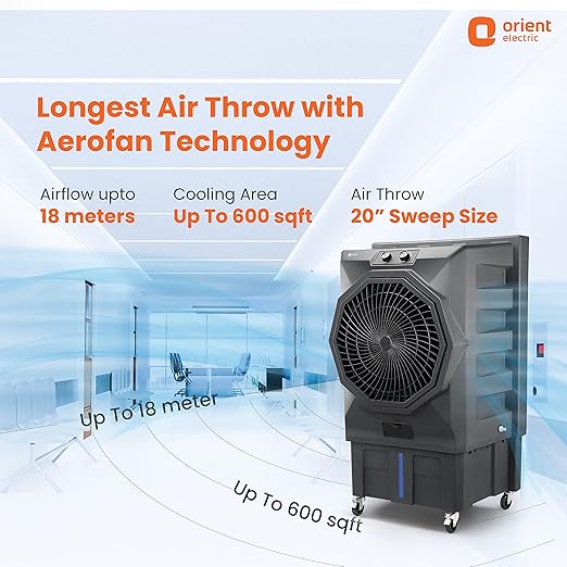 Orient Electric Stark 110 L Heavy Duty Commercial Air Cooler With 20 Fan | Aerofan Technology |High-Density Honeycomb Cooling Pads | Extra Powerful Air Throw Auto Water Refill Technology| Grey