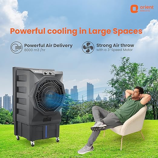 • Powerful Air Delivery 8000 metre cube/hr with a 3 speed motor This air cooler comes with specially designed fans, which deliver powerful and optimum air throw, ensuring cool air reaches every corner of your room. You can set the fan speed from any of the three levels (high, medium, or low), according to your preference.