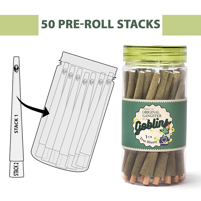 Original Gangster Goblins rolling papers jar |11/4 size - pack of 1 (50 cones)