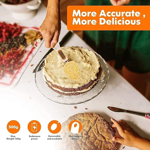 • Design - The spoon scale is designed to have a detachable scoop for cleaning and storage; with precision sensors, 500g capacity with 0.1 gram readability. Accurate scale can make your meal more delicious.