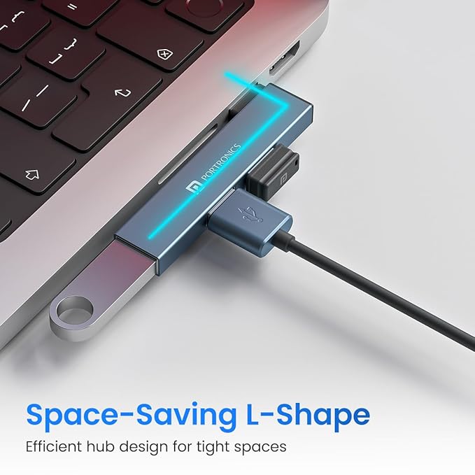 Portronics Mport Mino A USB 3.0 Hub Dock (3-in-1) with USB 3.0 SuperSpeed, Compact L-Shape Design, 2-Port USB 2.0 High-Speed, USB Plug, Metal Alloy Body, for Laptop, PC, Mac