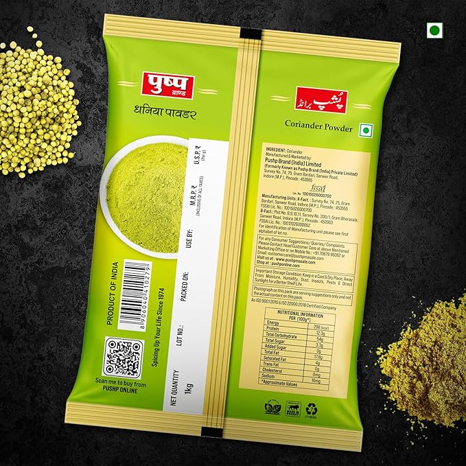 Pushp Natural Coriander Powder (Dhaniya) | Fresh & Aromatic Spice | Pure Dhaniya Powder for Cooking | 1Kg Pouch (Pack of 1)