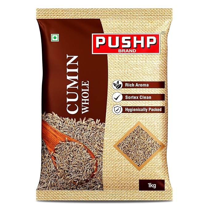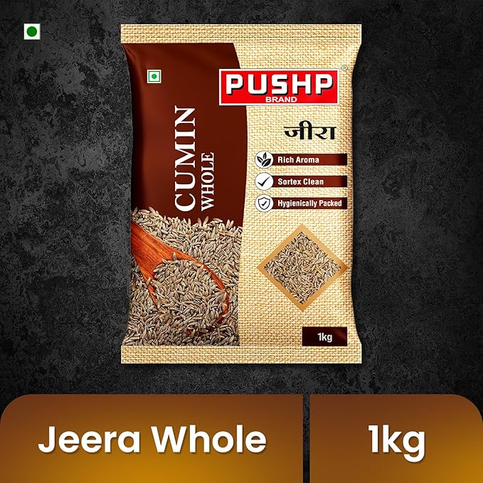 Pushp Whole Jeera | 1kg Pouch | Premium Cumin Seeds | Aromatic Flavorful | Ideal for Cooking, Tadka, Seasoning