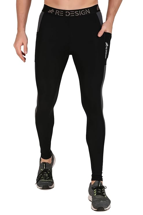 ReDesign Apparels Men's Nylon DC Pocket Compression Pant for Running, Gym and Other Sports