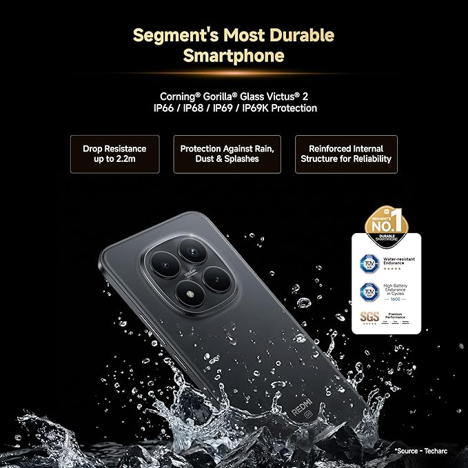 REDMI Note 15 Pro+ 5G (Carbon Black, 8GB+256GB) | 200MasterPixel OIS Camera | Snapdragon 7s Gen 4 | 17.3cm CrystalRes AMOLED Screen | IP66/68/69/69K | Mega 6500mAh Si/C Battery | 100W Hyper Charging