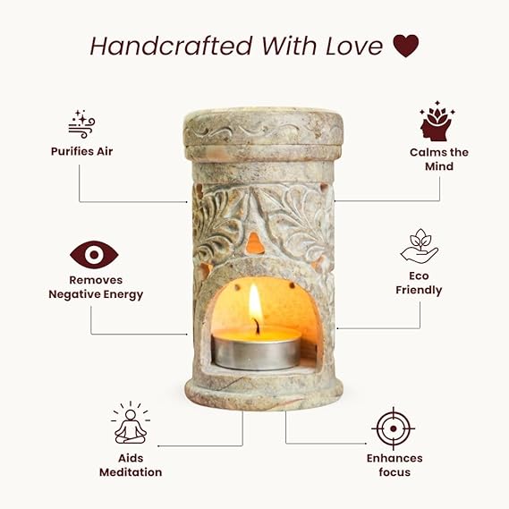 • Hand-Carved Camphor Diffuser Burner - It is designed with unique floral patterns meticulously carved by skilled artisans, making each piece truly one of a kind.