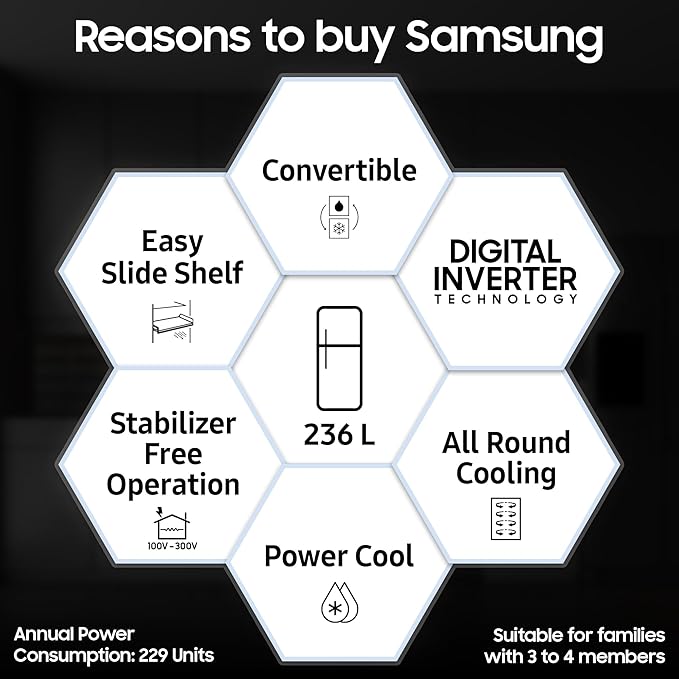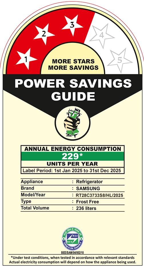 • Capacity 236 liters: Suitable for families with 2 to 3 members