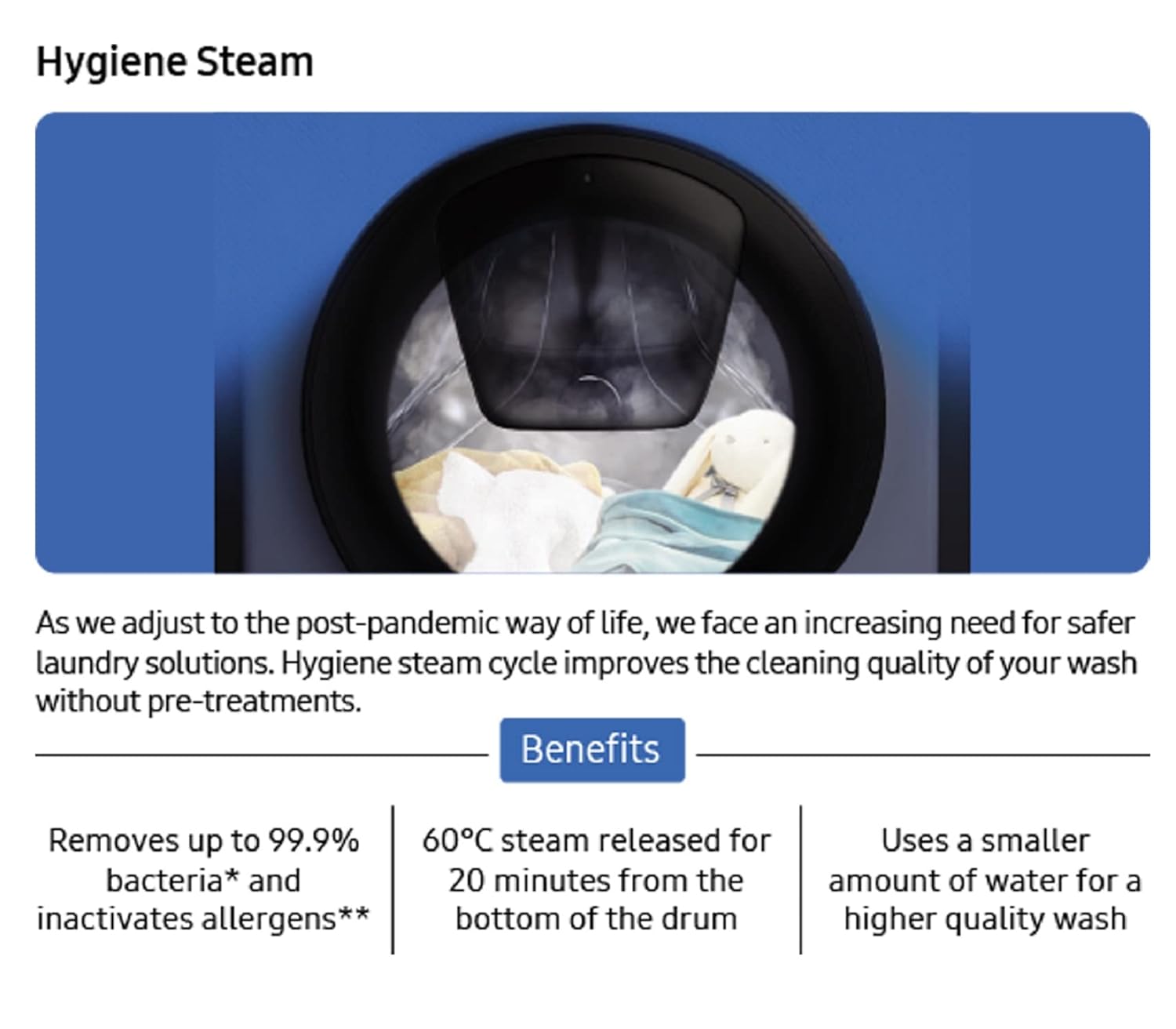 Key Performance Features: AI Control | Drum type: 2nd Diamond | Intensive | Language Setting | DIT Motor | My Cycle | Pre Wash | Quick Wash | SmartThings | 1200 RPM | StayClean Drawer | Steam