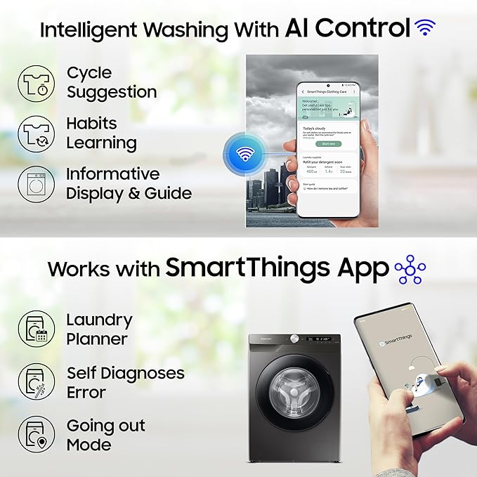 Fully-automatic front load washing machine with AI Control and Wi-Fi Technology : Best Wash Quality, Energy Savings (up to 70%) and Water efficient