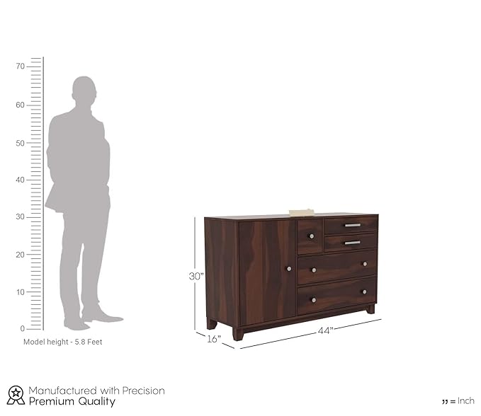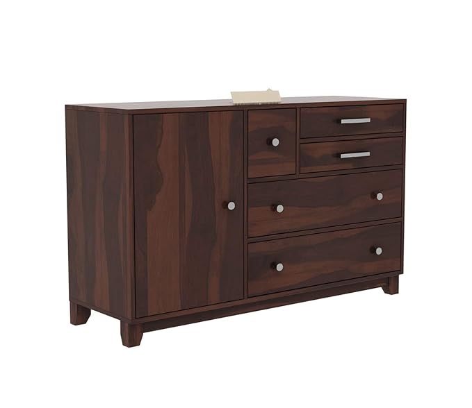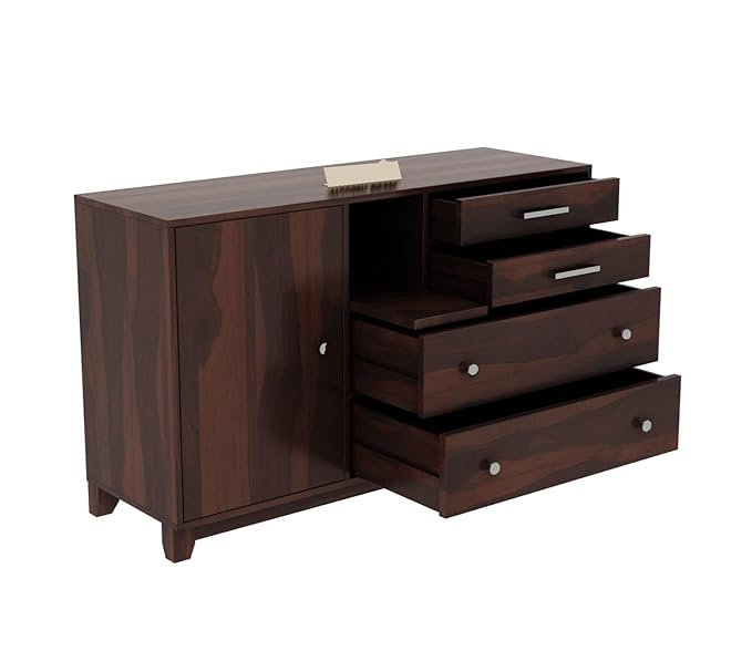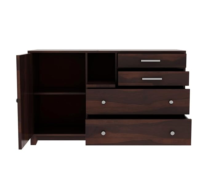 Sheesham Wood Wooden Chest of Drawers: 4 Drawers & 3 Shelves Sideboard Dresser with Ample Storage Space (Harold)