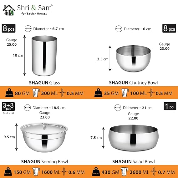 Shri & Sam Stainless Steel Shagun Dinner Set (101 Pcs Set)