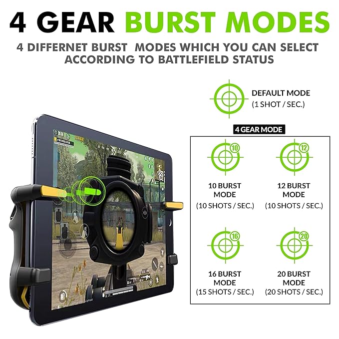 SpinBot BattleMods T10 ELECTRIC Gaming Trigger for TABLETS/iPADS with BURST MODE for BGMI/Free Fire Max/COD Mobile/etc-1 Pair (Not for Smartphones)