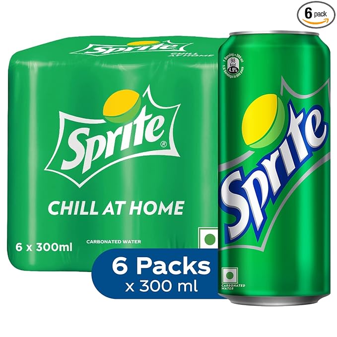 Sprite Lemon-Lime Flavoured Cold Drink | Refreshing Taste | Clear Soft Drink with No Added Colours | Recyclable Can, 300 ml (Pack of 6)