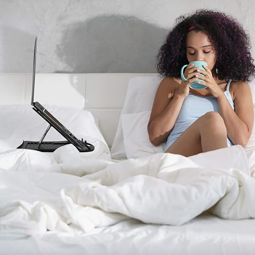 • ADJUSTABLE HEIGHT 7 OPTIONS: Raise your laptop or tablet to any of seven adjustable heights from 2.7” to 6.7” so you can get a clearer, glare-free view while getting neck pain relief and preventing eye strain.