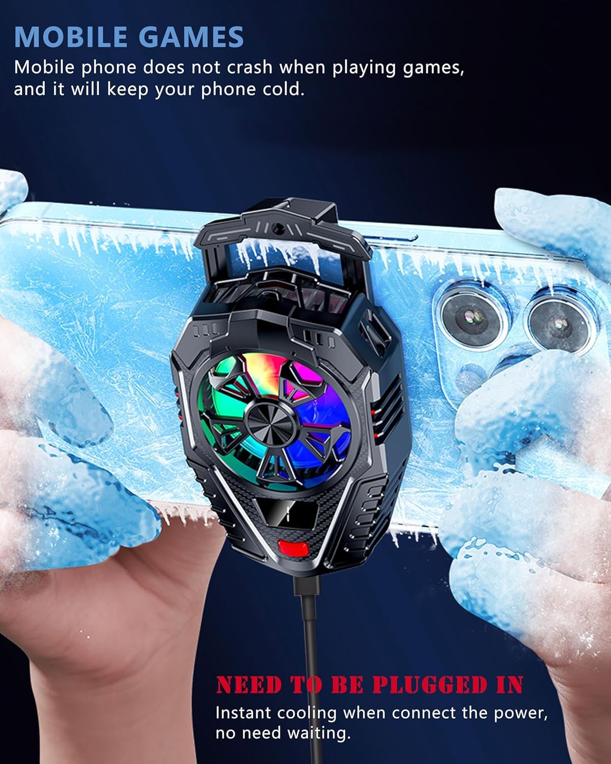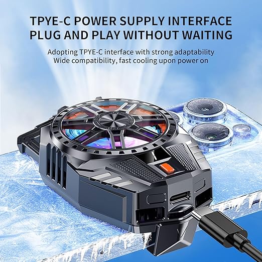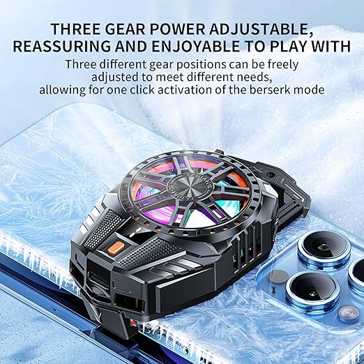 • Clamp design, just attact phone cooler gaming fan on the back of your phone, you can still on your phone. The cooling fan for mobile can be used on when you play phone games, helping to lift phone performance. Compatible with most 5-7 inch phones of Andoid and iOS system. Plus, the gaming cooler for mobile is lightweight and portable, making it easy to take with you wherever you go. Say goodbye to phone overheating with this powerful and versatile cooling fan.