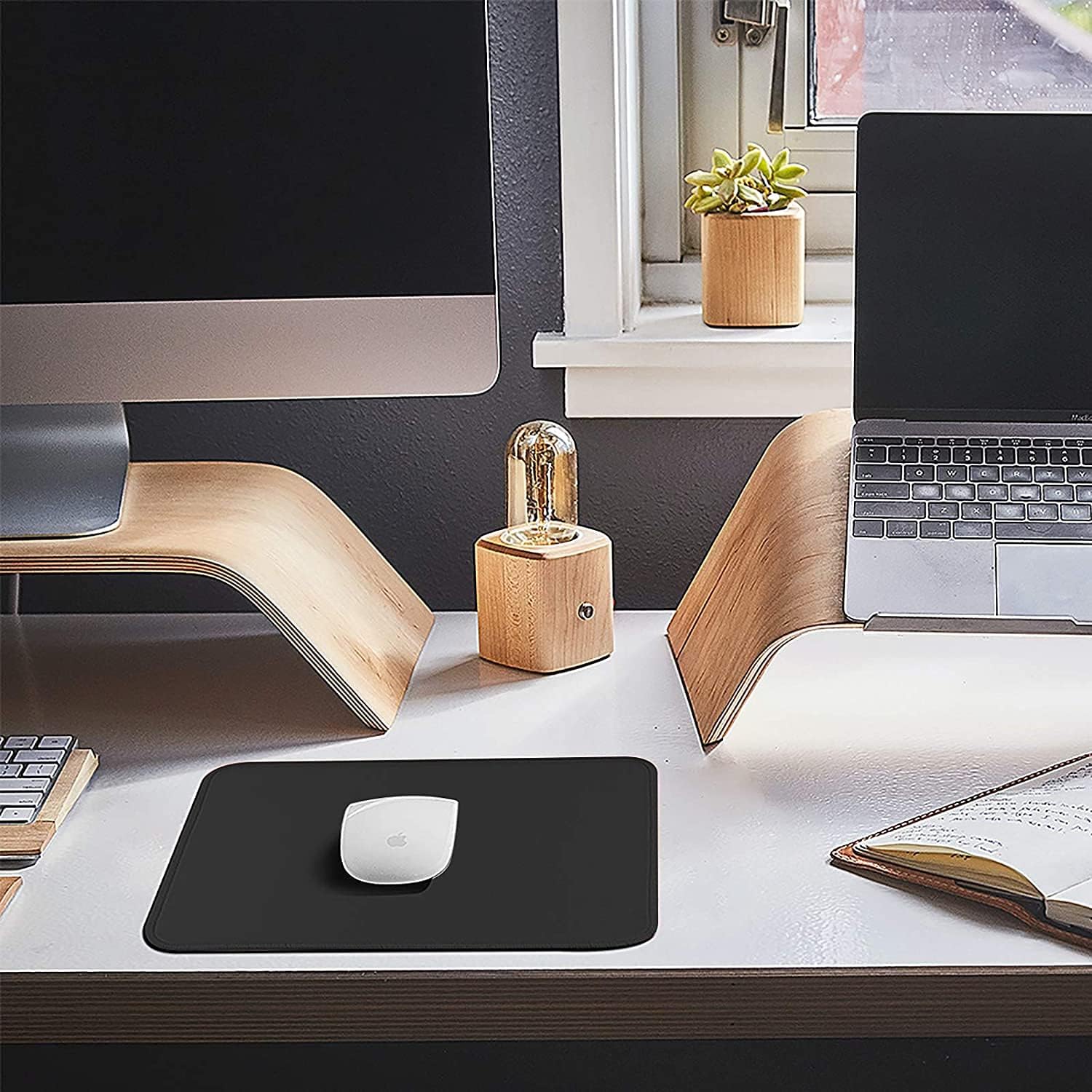 The black color and minimalist design of the Mouse Pad make it a great addition to any workspace. Its sleek and stylish look is perfect for those who prefer a clean and modern aesthetic.
