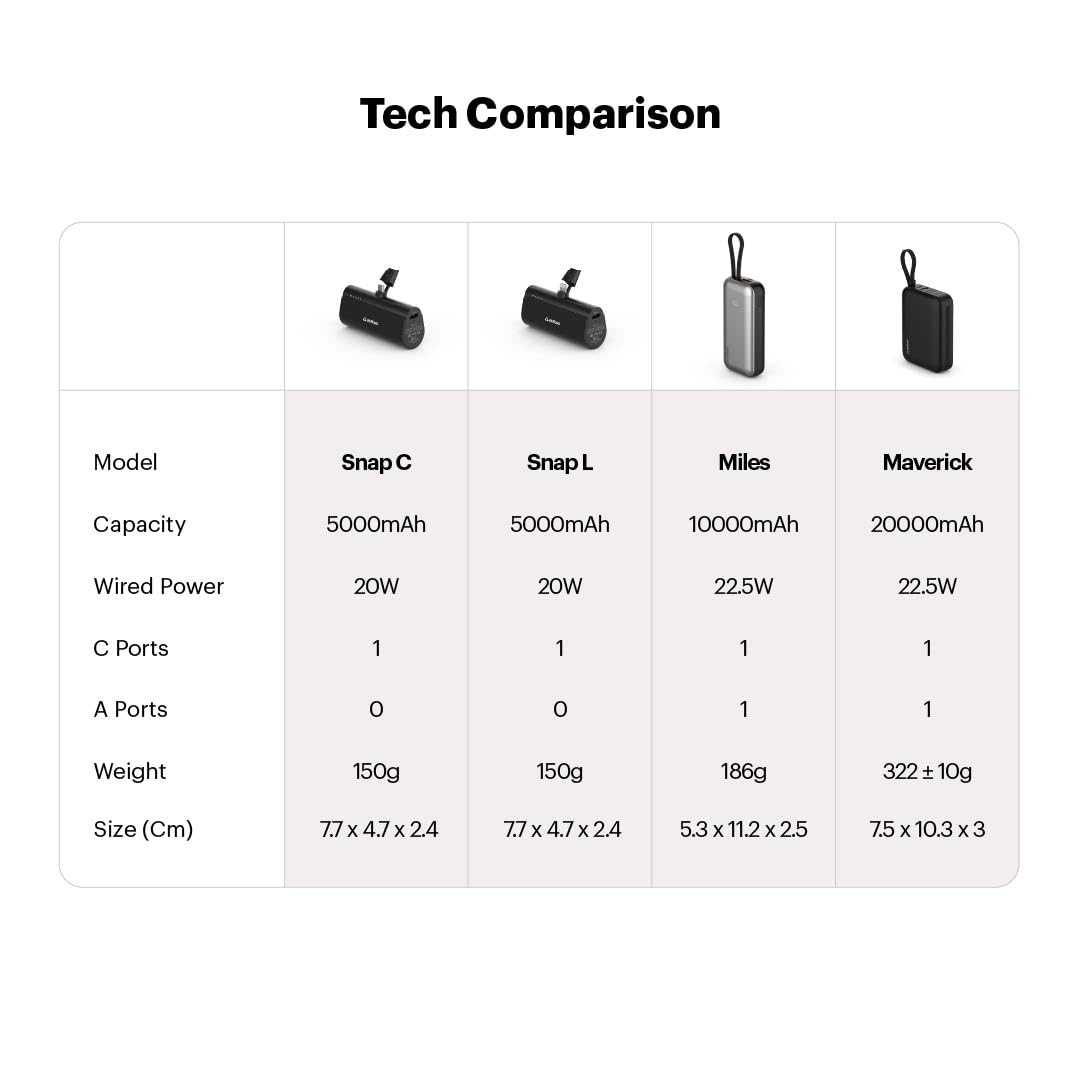 • [Tangle-Free Charging]:Featuring built-in Lightning and Type-C cables, Maverick delivers up to 20W output, enabling rapid charging for your devices without the need for extra cables.
