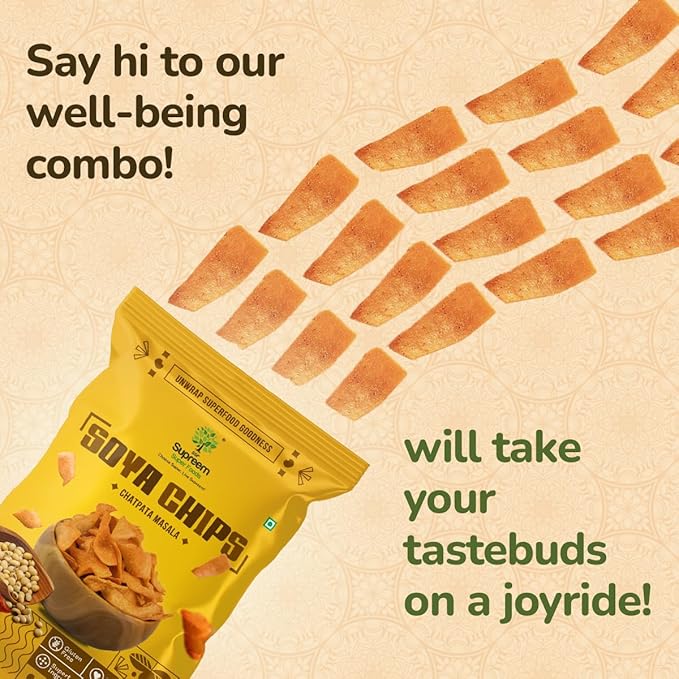 Supreem Super Foods Soya Chips | Roasted Soya Chips | Healthy Soy Chips Snack | Indian Soya Crisps | Perfect High Protein & Fibre Rich Breakfast, Evening or Midnight Munching