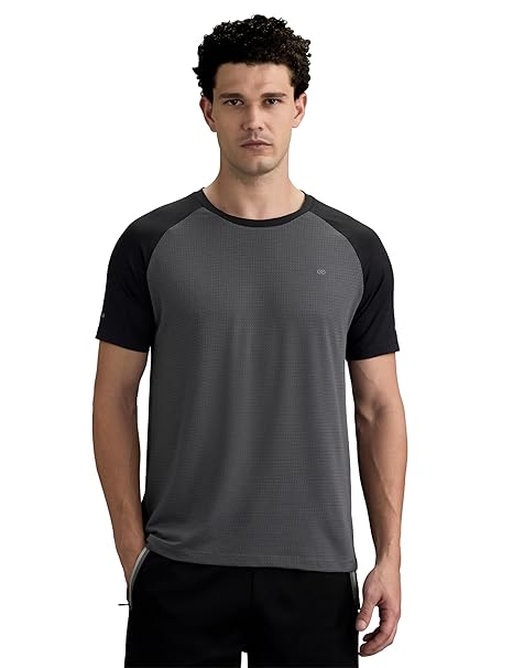 Solid Regular Fit Sports Stretch T-Shirt | Round Neck | Raglan Sleeve | Moisture-Wicking | Activewear | Running | Gym | Plain