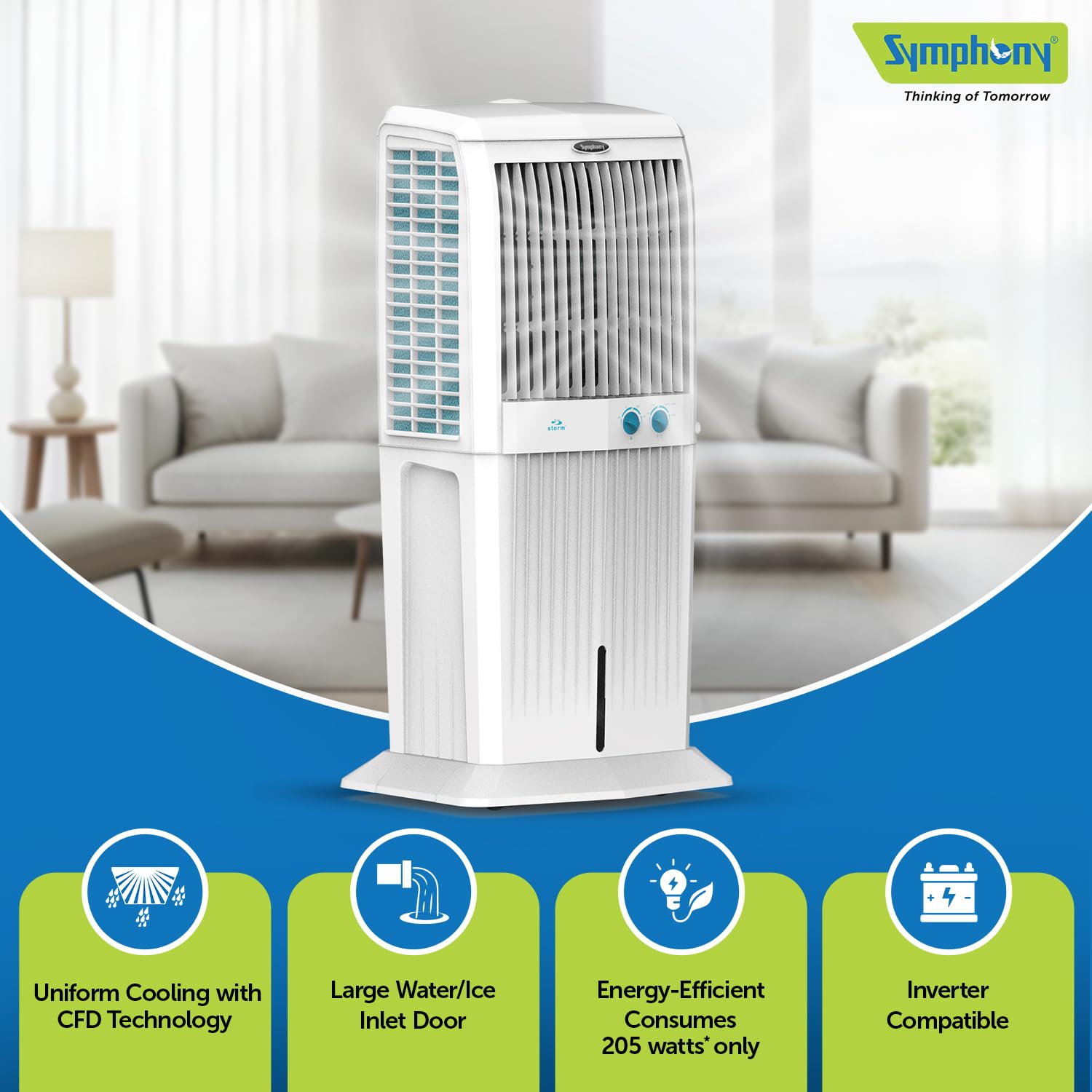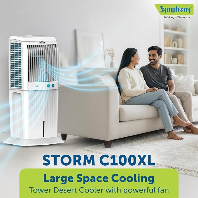 Symphony Storm C100 XL Desert Air Cooler | 3-Side Honeycomb Pads | Easy Fill | CFD Technology