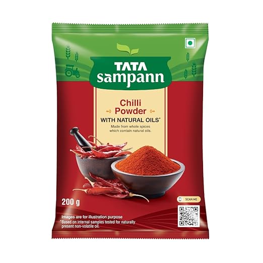 Enjoy the rich taste of Tata Sampann Chilli Powder in all your favorite dishes. Every pack carries the promise of an active ingredient called Capsaicin. These spices have the natural oils in the spices intact thus offering you sampann goodness. Tata Sampann Spices contain no added preservatives.