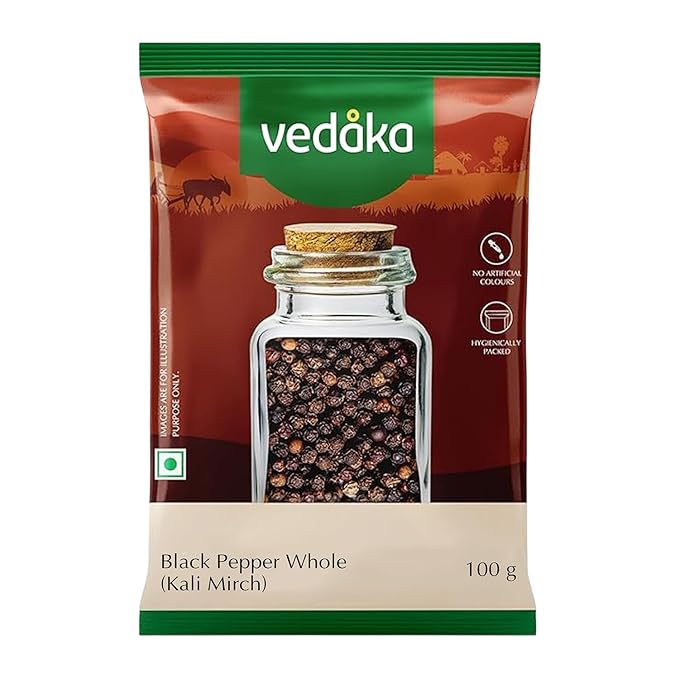 Vedaka Black Pepper Whole (Kali Mirch) |100g |No added colours | No added preservatives | Seeds |