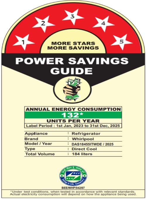 • Energy Rating 5 Star: Best in class efficiency | Annual Energy consumption - 132* Units Per Year (Please refer BEE label for more information), Model/Year : DAS18455ITWDE/2025.