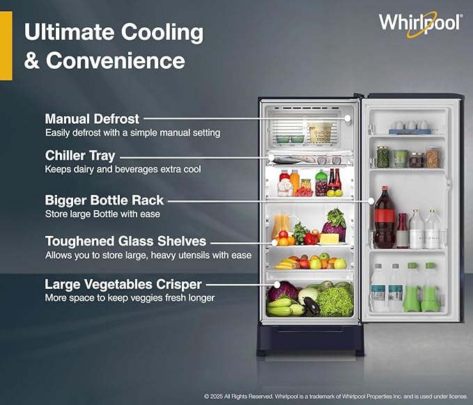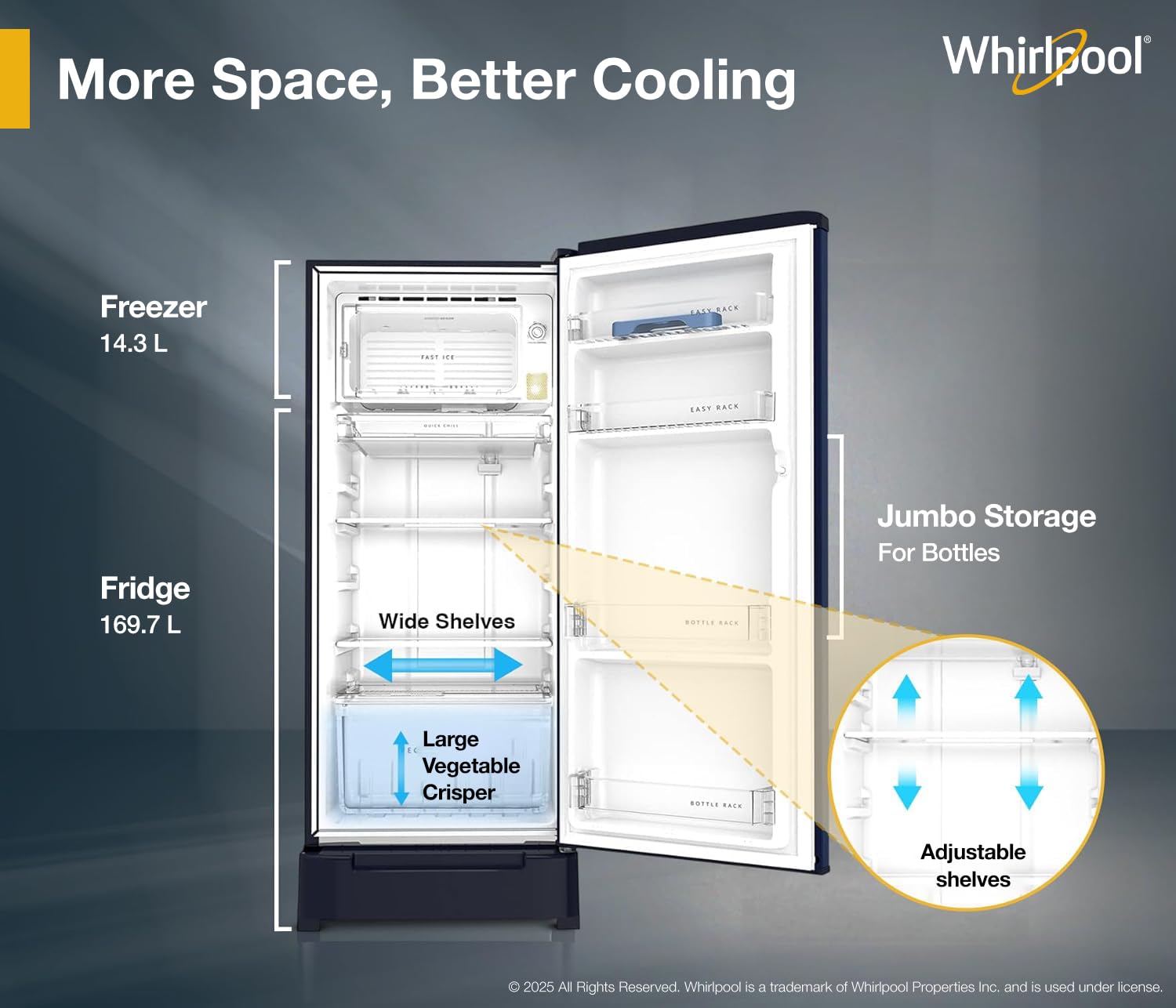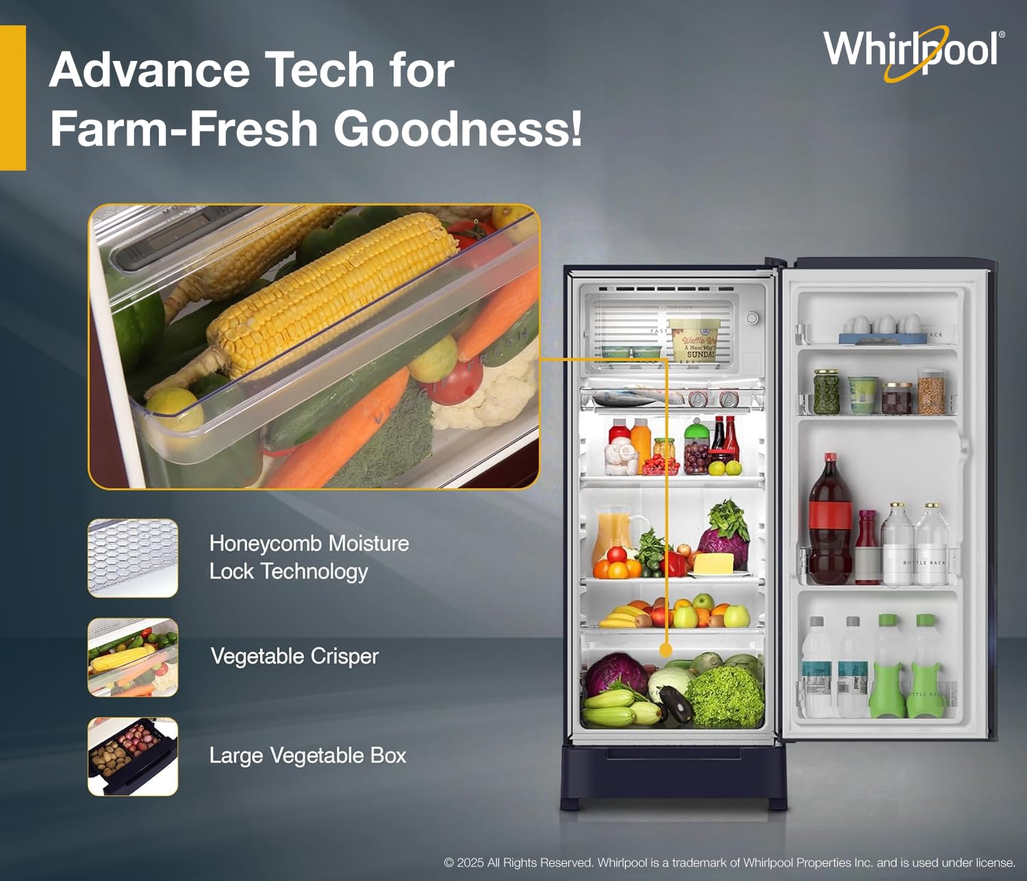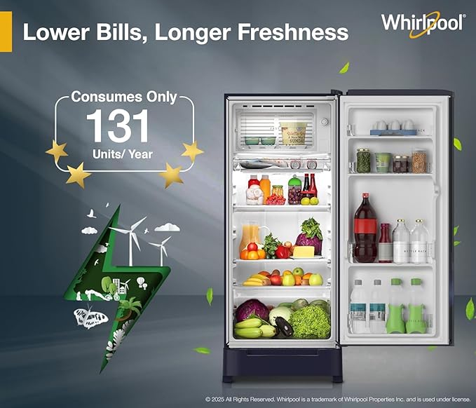 Whirlpool 184 L 5 Star Direct-Cool Single Door Refrigerator with Intellisense Inverter Compressor (205 WDE ROY 5S Inv SAPPHIRE SPRING-Z)