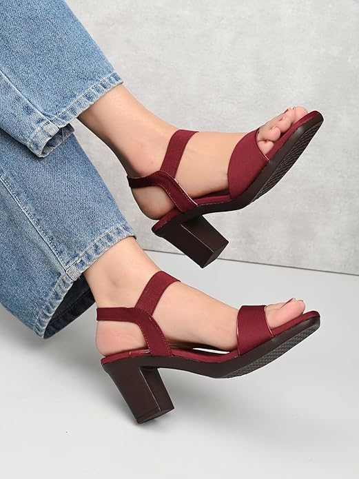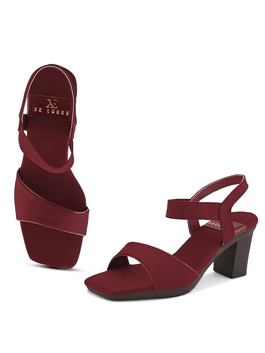 XE Looks Womens Trendy Block Heels | Open-Toe Sandals with Elastic Support | Anti-Skid Sole Cushioned Footbed Block Heels For Girls Women