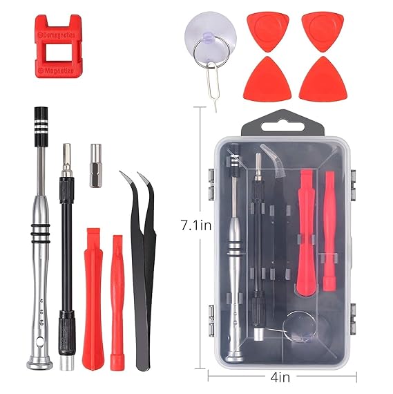 • ➤【Screwdriver Set with Case】Our Repair tool kits is equipped with a storage box(16*10*4.5cm) made of PP material, The storage space is designed reasonably, and each screwdriver head has a name, do not worry about confusion and loss.