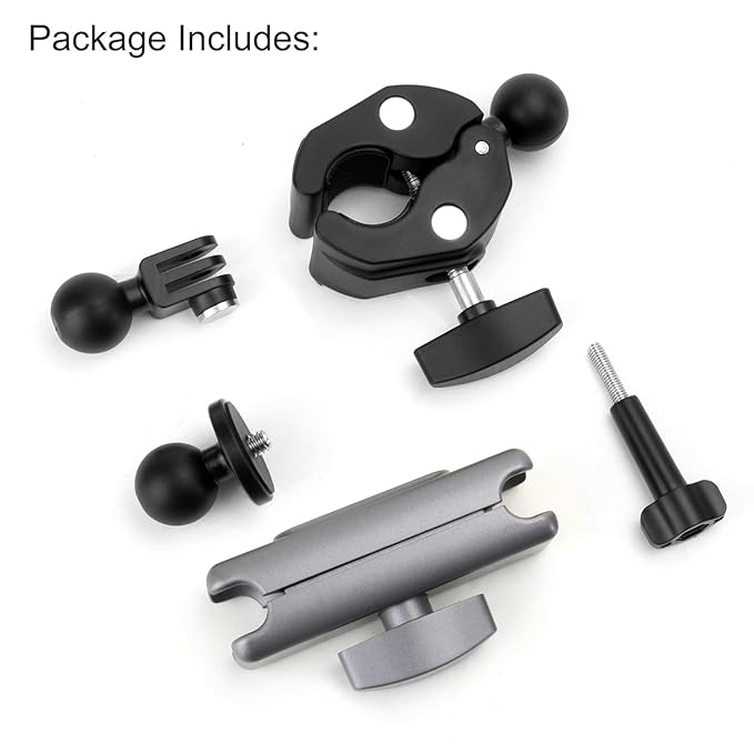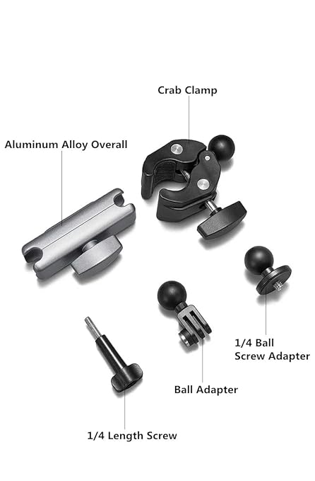 This camera clamp mount adopts double ball head design which achieves any angle shooting at will. The big screw in the centre can be quickly adjusted to loosen the tightness, you can quickly adjust the angle after loosening, and there will be no loosening or shifting after tightening. There is no need to worry about stability even for long periods of movement, riding or static clamping.