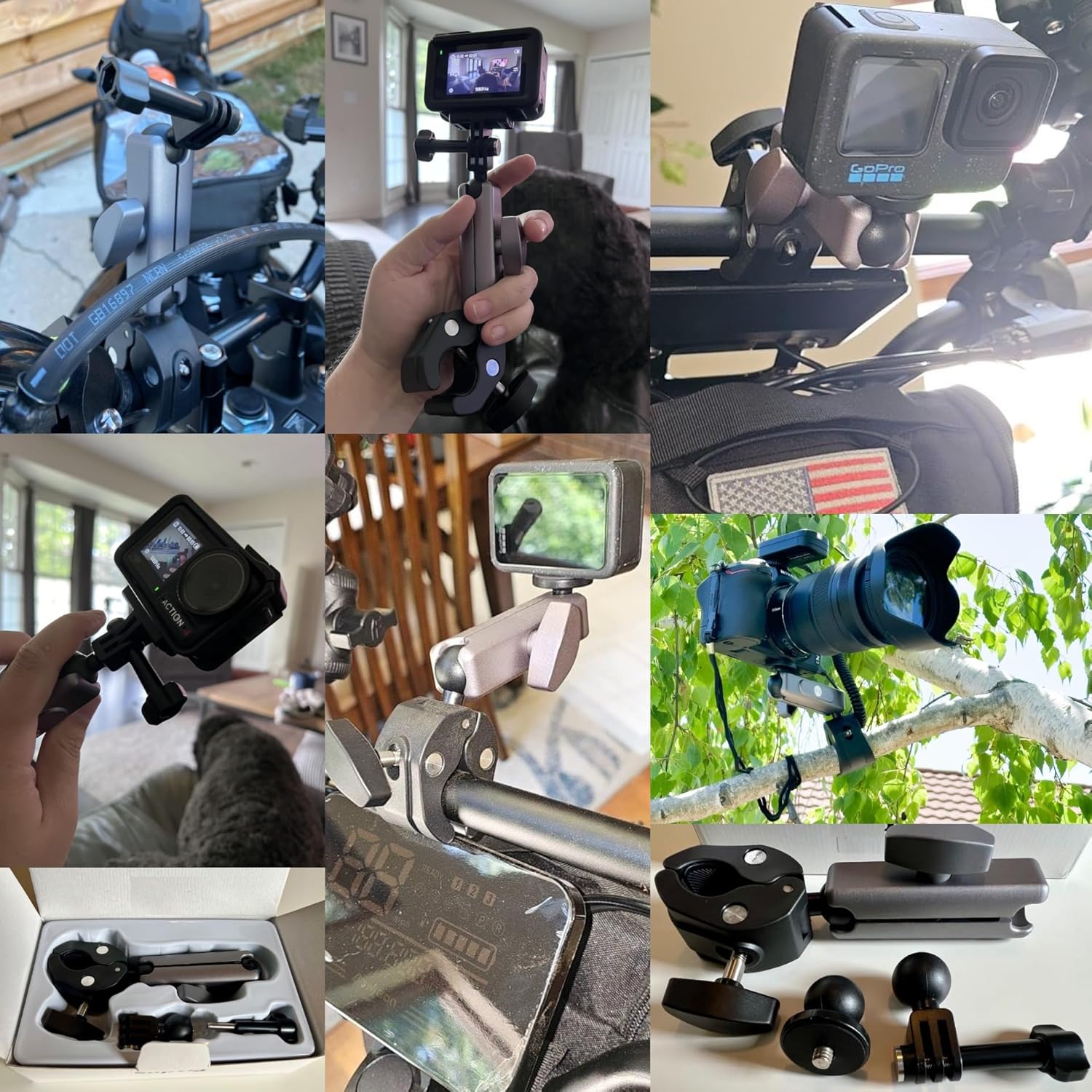 The super clamp mount is made of strong aluminium alloy and precision CNC work with extremely tough nylon plastic material for durability, the fixture area is fitted with a protective dense rubber pad, which is more wear-resistant and won't scratch the tube, helping you capture high quality and stable video images while riding or moving