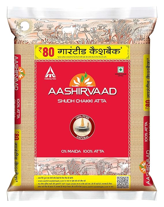 • AASHIRVAAD SHUDH CHAKKI ATTA: It is made with 100% pure and natural whole wheat atta, keeping its natural dietary fibres and nutrients intact