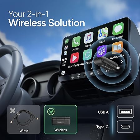 Plug & Play Setup: Designed for cars with OEM wired Apple CarPlay or Android Auto — simply plug in and connect wirelessly in seconds, no extra apps or tools required.