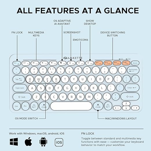 Compact, Lightweight & Portable, Retro Pop Silver Membrane Keys, Seamless 4-in-1 Connectivity |