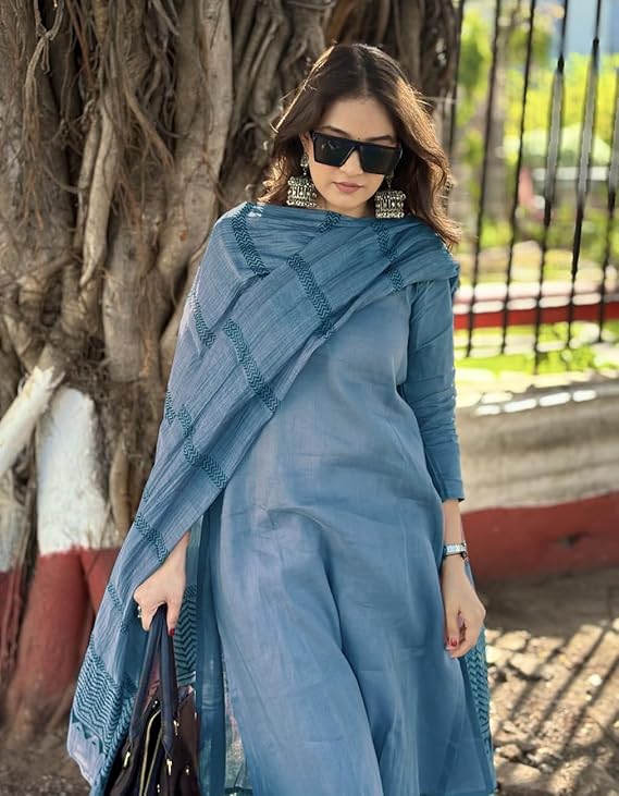 • Kurta Set Fabric: Rayon Blend (Rayon 90% Cotton 10%) || Kurta Set Color :- Light Blue