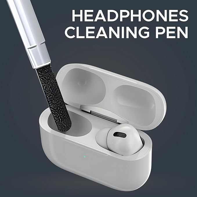 • Headphones Cleaning Pen: Cleaning pen with a metal tip can deeply clean stubborn dirt, mini brush cleans the earphone mesh; round brush and soft brush can clean the dust and dirt hidden in the deep of the charging case. There is an extended handle for these accessories, making them easier to use.