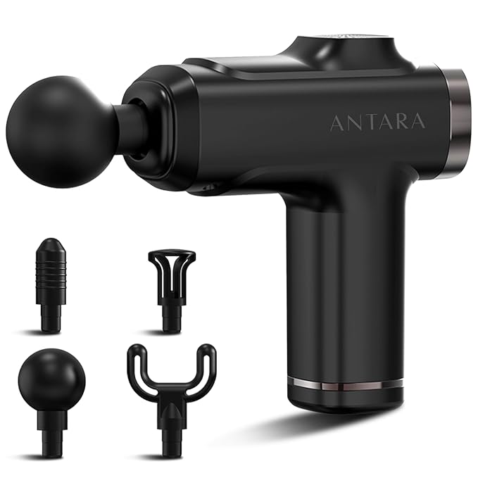 Antara AGEasy (Max Group) Relief Compact Massage Gun | 8 Speed Levels, 4 Massage Heads | USB Type-C Rechargeable Handheld Massager | Full Body Pain Relief Muscle Massage Machine for Men & Women (Black)