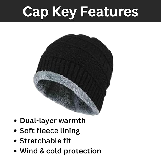 • 3-in-1 Winter Combo: Complete winter protection set including warm woollen cap, muffler and thermal gloves. Perfect for men and women to stay comfortable in extreme cold, travel, daily outdoor wear.