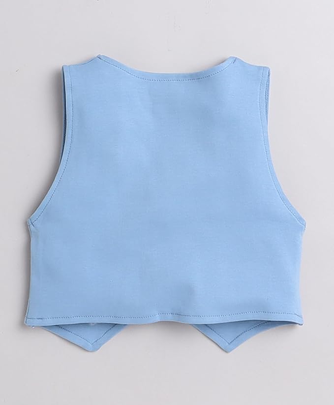 BUMZEE Powder Blue & White Boys Full Sleeves Shirt Waistcoat & Pant Set With Applique Bow (Peb9069)